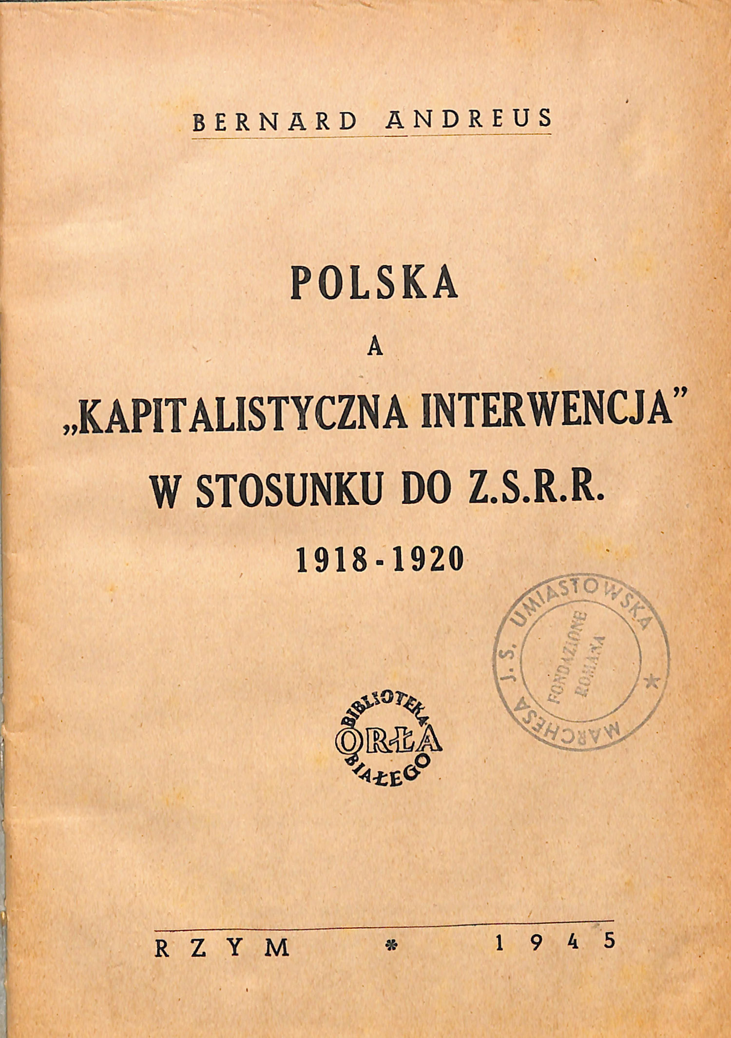 Titolo / Tytuł: Polska a “kapitalistyczna interwencja” w stosunku do Z.S.R.R. 1918-1920